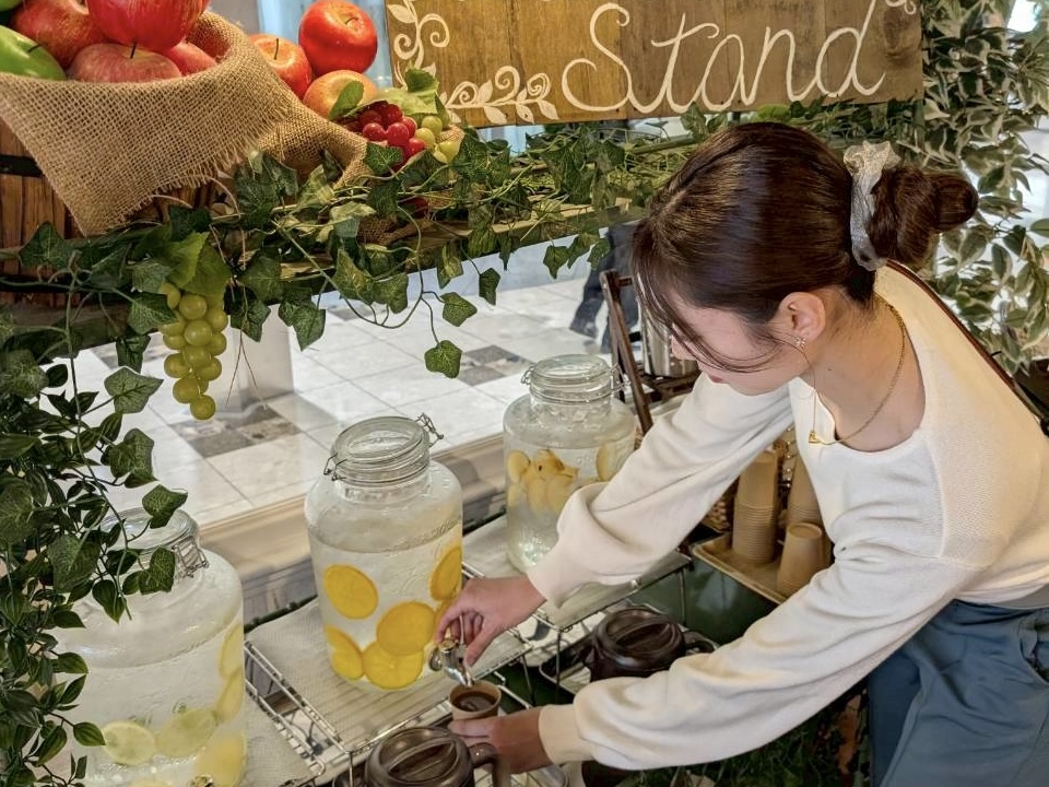通常のお水のほか、レモン・オレンジ・りんごのフルーツの香りがほんのり広がるフルーツウォーターをセルフで注ぐことができます♪