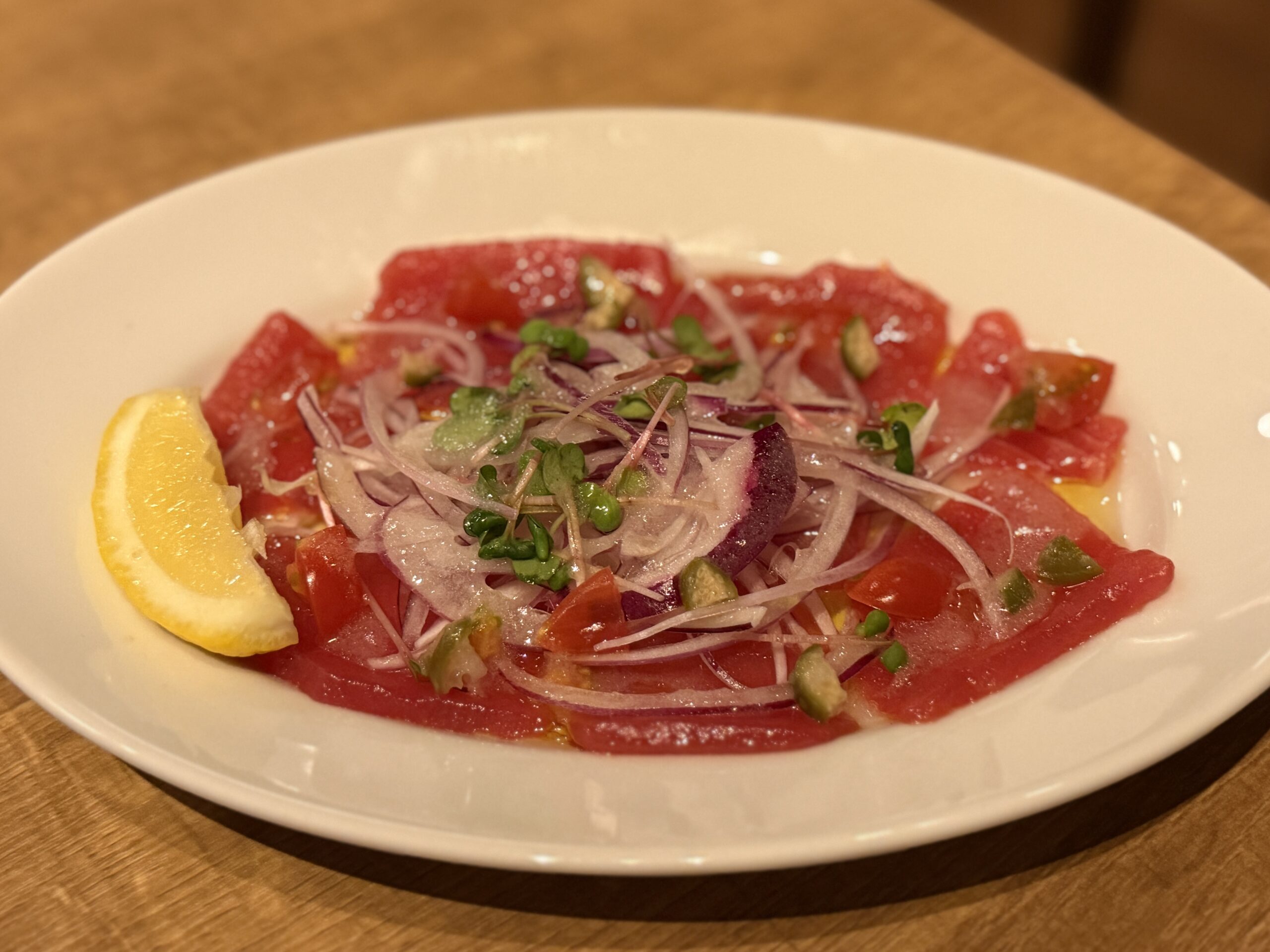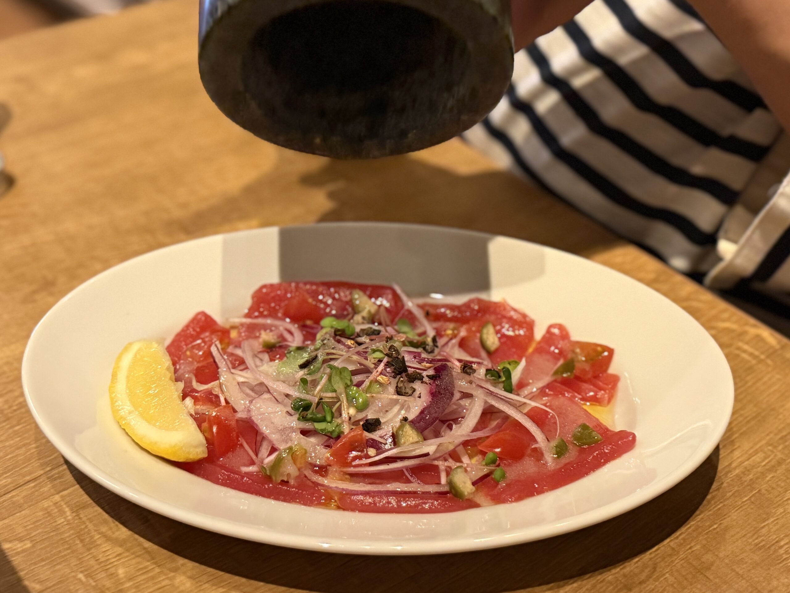 ひと手間加わることで印象が変わる、シンプルなカルパッチョが、一気に奥行きのある味わいに変化するのが面白かったです。