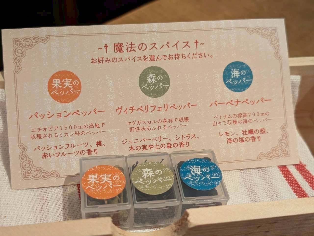 こちらは、魔法のスパイスで楽しめるメニューとなっています。