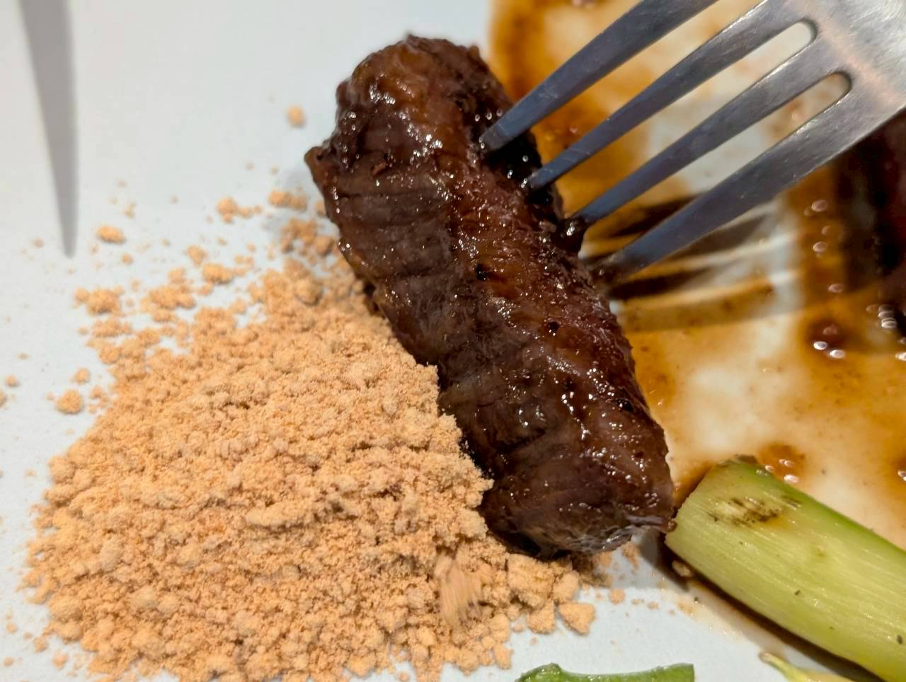 「お肉をきなこに付けて食べるの!?」と最初は驚きましたが…、意外とこの組み合わせが合う事にまた驚かされちゃいました。
