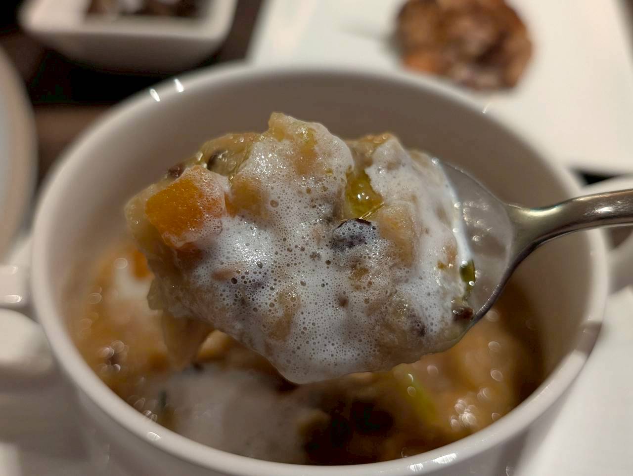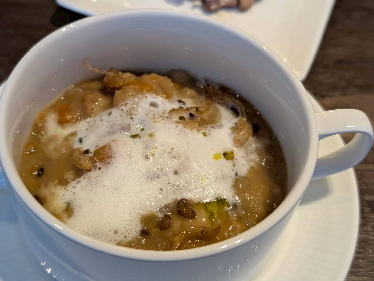 スープの中にダイブすると、ミルクフォームとの相性も良くまろやかで、二度美味しいを堪能できます!☆