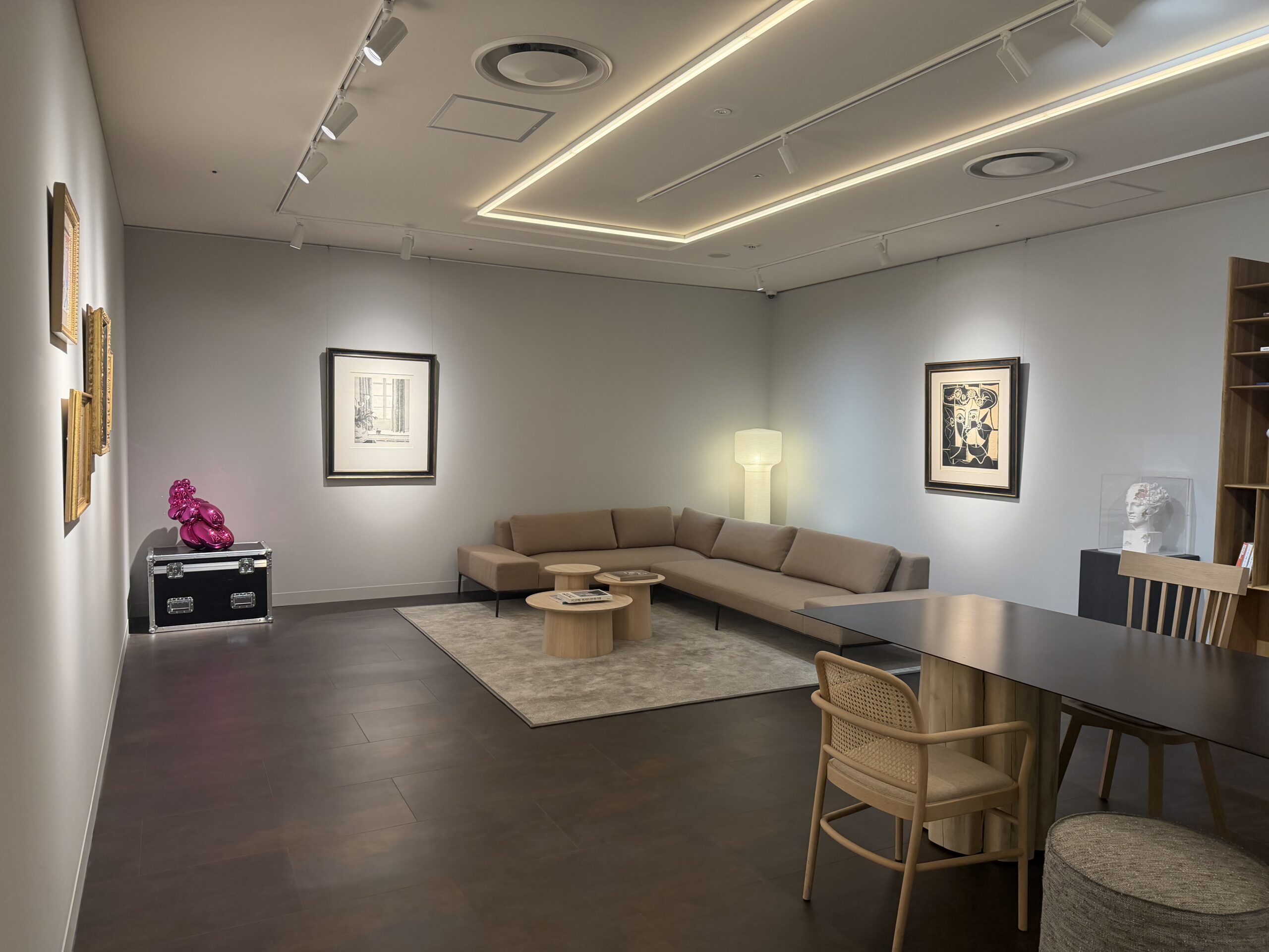 「リビングでゆったりしている空き時間にアートを観ている」がコンセプトの空間だそう。