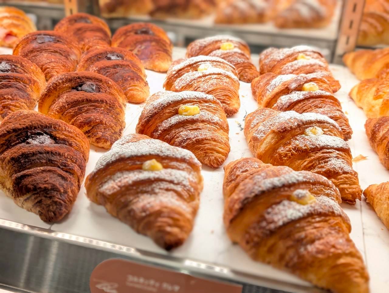 発酵バターを丁寧に織り込んで焼き上げた、香ばしくサクサクのコルネッティは、外せないフード。