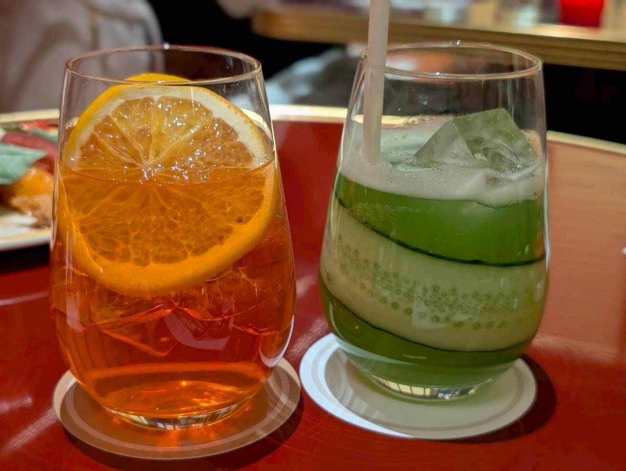 左側ドリンクのキューカンバーは珍しく印象的で、きゅうりが入っているカクテルは、甘さ控えめで後味はすっきり、爽やかさと上品さを兼ね備えた和洋折衷のノンアルコールとして楽しめます。