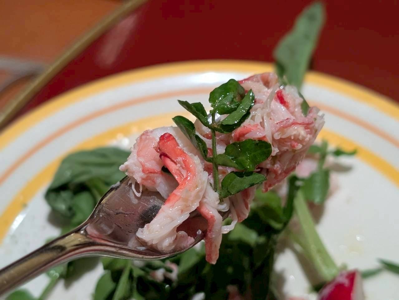 青山椒のさわやかな味わいと自家製の「ライムドレッシング」がカニの甘味と旨味を引き立てます♡